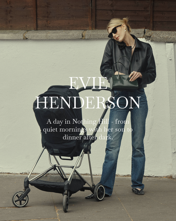 Morning light and quiet moments at home. Evie’s days begin simply. Time with her son, comfort in familiar streets, and a sense of calm that defines her effortless style.