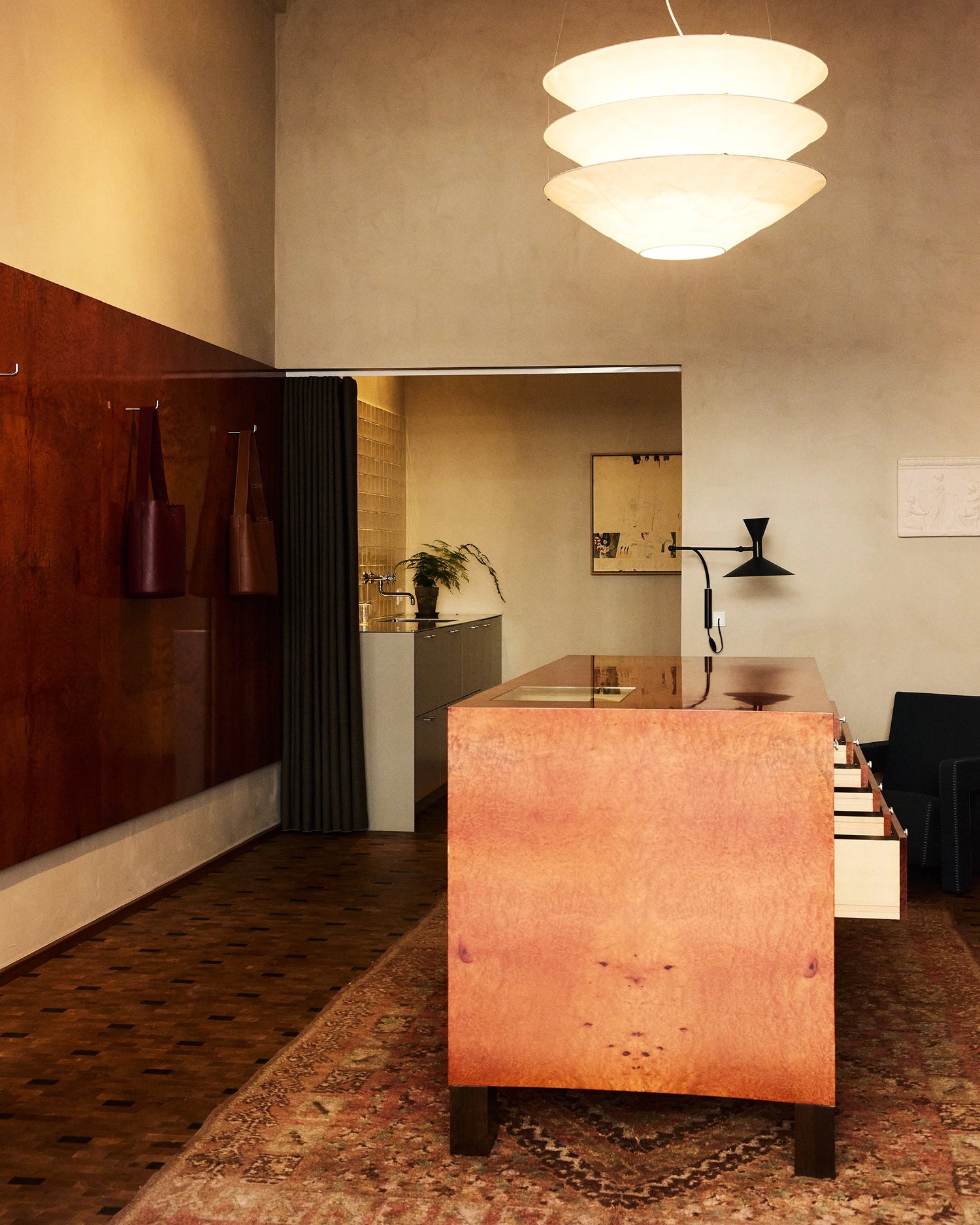 The bespoke multifunctional centerpiece is designed by architect Julius Nielsen and features a lacquered madrona veneer surface. Inspired by vintage wooden drawers housing office supplies or pharmaceutical equipment, this desk recombines exhibition with functionality. The LIÉ STUDIO flagship store houses the entire product selection, among this all jewelry and leather pieces in all sizes and colorways. You will be able to try on desired items, while being consulted by our highly skilled and dedicated staff if in need of any advice.